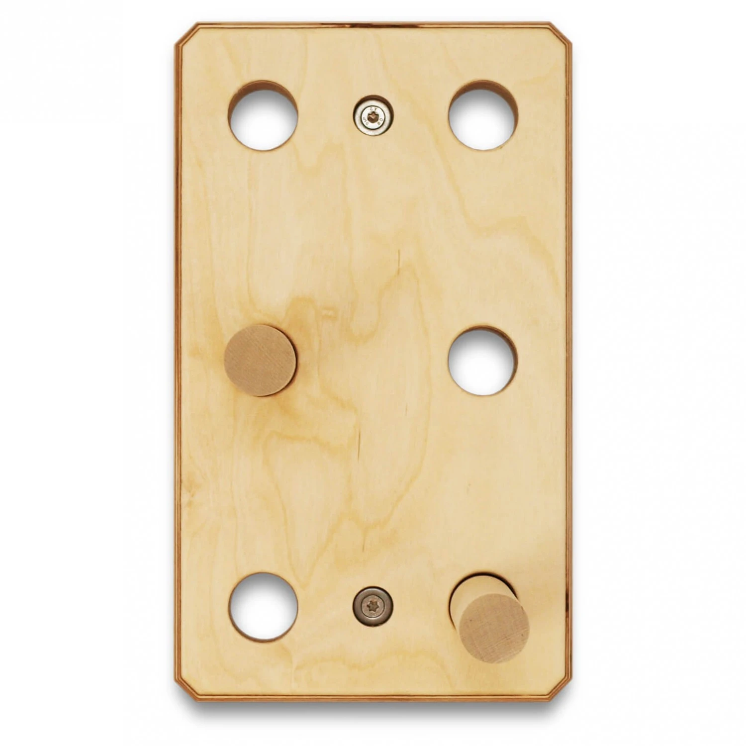 Das sorgt für einen kräftigen Oberkörper – das Ant Hill von Antworks. Das Pegboard ist sauber verarbeitet und besteht aus hochwertigem Birkenschichtholz. Im Lieferumfang sind neben dem benötigten Montagematerial bereits zwei Rundhölzer (Pegs) enthalten. Diese passen (leicht schräg eingesteckt) genau in die Löcher des Pegboards. So kann man am Brett auf- und abhangeln und die Rundhölzer weiter stecken. Bei dieser Übung ist man gezwungen, ein Holz kurzzeitig komplett zu blockieren. Besonders effektiv ist das Training, wenn man Auf- und Abstieg trainiert (außerdem entfällt dadurch die Notwendigkeit, seine Pegs mit dem Stuhl wieder aus den obersten Löchern holen zu müssen).Hinweis: das Ant Hill Pegboard ist zur vertikalen Montage vorgesehen. Bei einer horizontalen Ausrichtung kann durch die schräg nach oben verlaufenden Bohrungen für die Rundhölzer nicht trainiert werden.