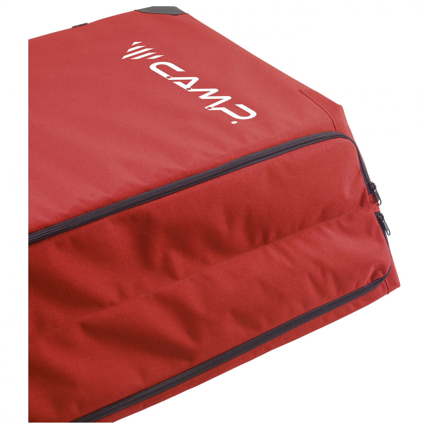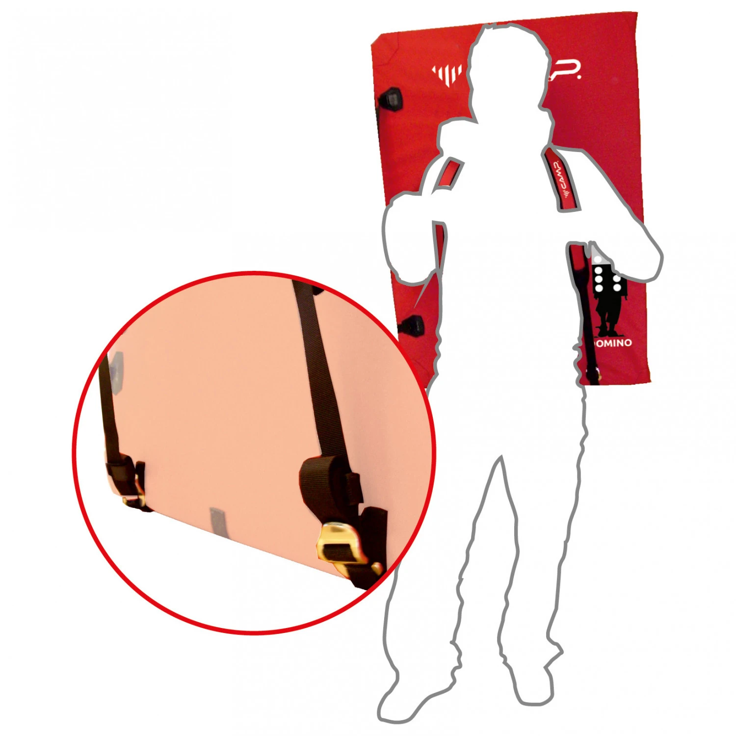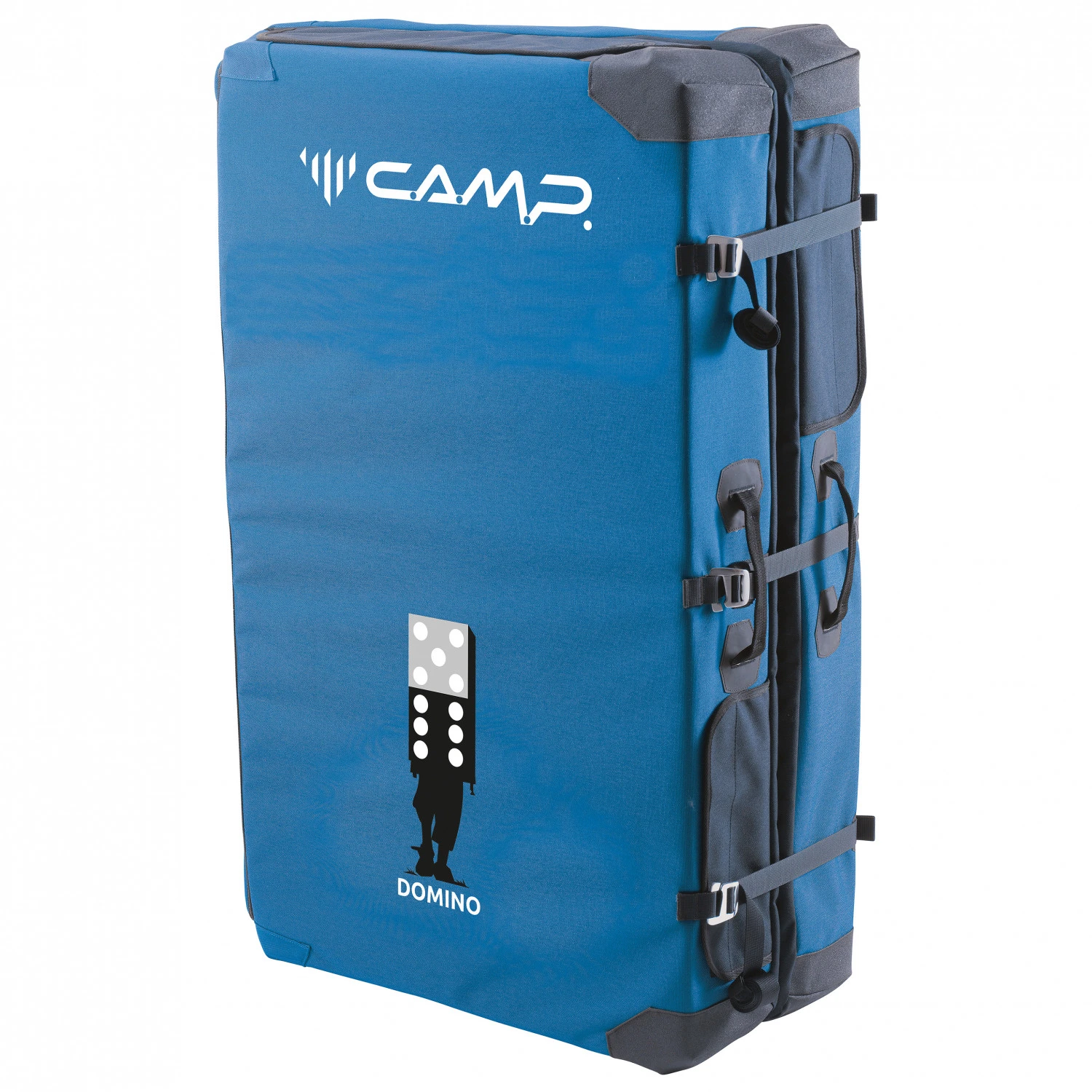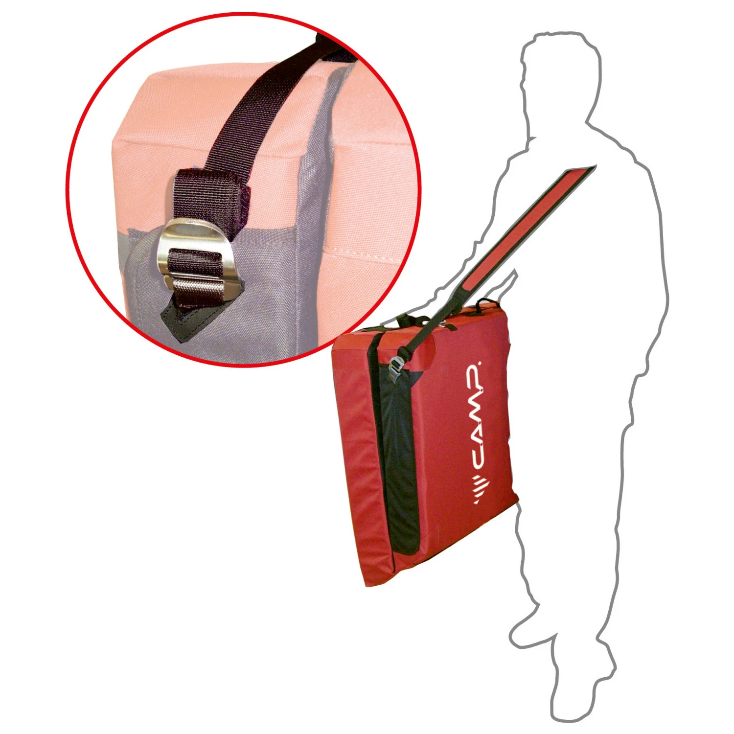 Das Domino Crashpad von C.A.M.P. besteht aus weichem, 13,5 cm dickem EVA-Schaum. Zur Verstärkung hat es an den Ecken Hypalon-Einsätze. Damit Du es gut zum Felsen und wieder zurücktransportieren kannst, ist es zusammenklappbar, mit Schnallen zu befestigen und dann mit Schultergurten zu tragen.