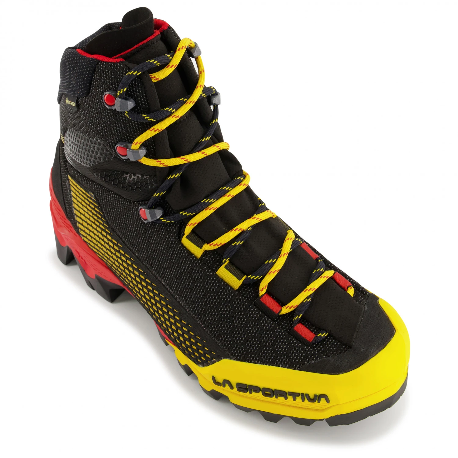 Für alle, dies es am Berg gerne leicht mögen, gibt es die Aequilibrium ST GTX von La Sportiva. Diese Bergschuhe eignen sich aufgrund ihres Designs besonders gut für Klettersteige sowie zum Trekking und für Hochtouren. Das Obermaterial besteht aus einem abriebfesten Synthetik-Material und wird zusätzlich durch einen Geröllschutzrand vor äußerer Einwirkung geschützt. Hierdurch schadet auch vermehrter Fels- und Eiskontakt den Schuhen nicht. Zusätzlich ist das Material danke GORE-TEX Membran wasserdicht und atmungsaktiv und sorgt dafür, dass entstehende Feuchtigkeit schnell nach außen abgegeben wird.