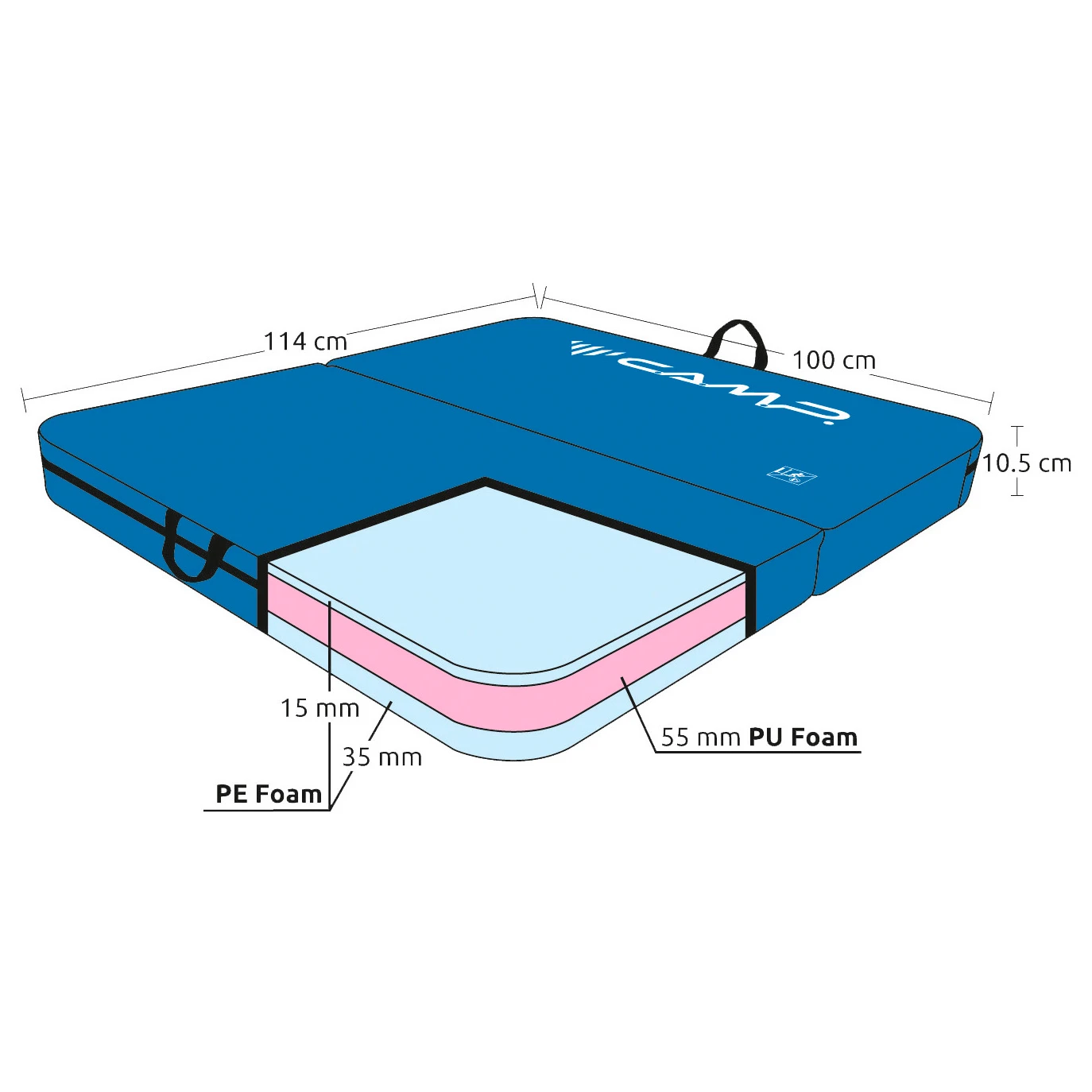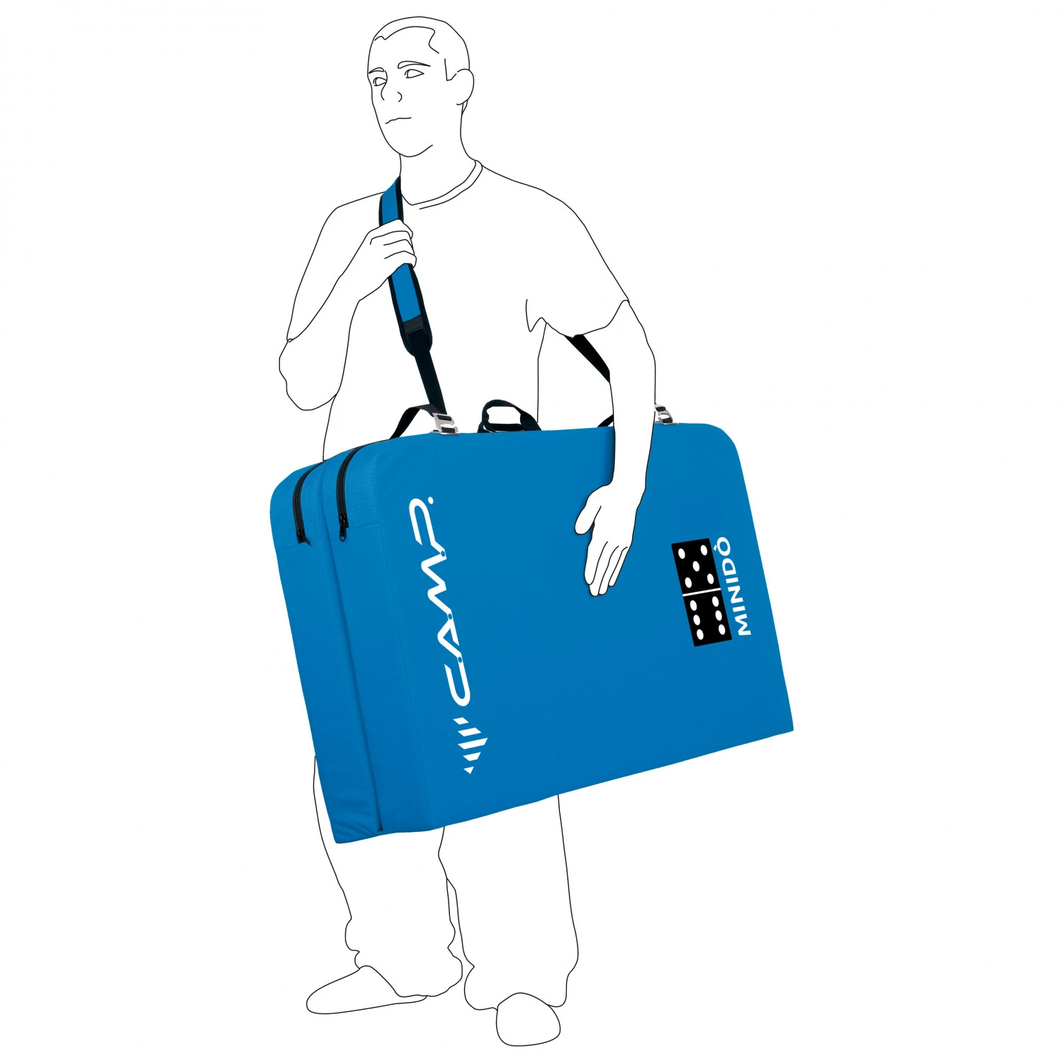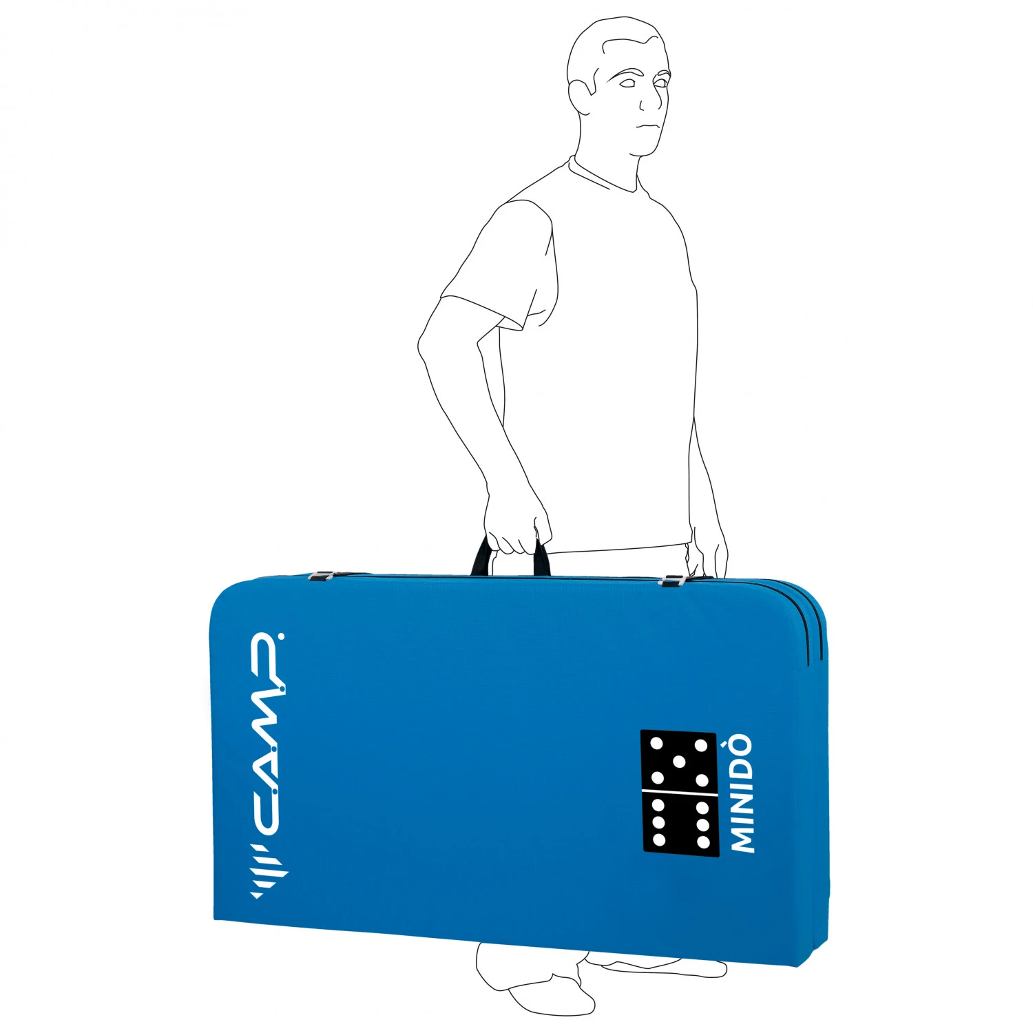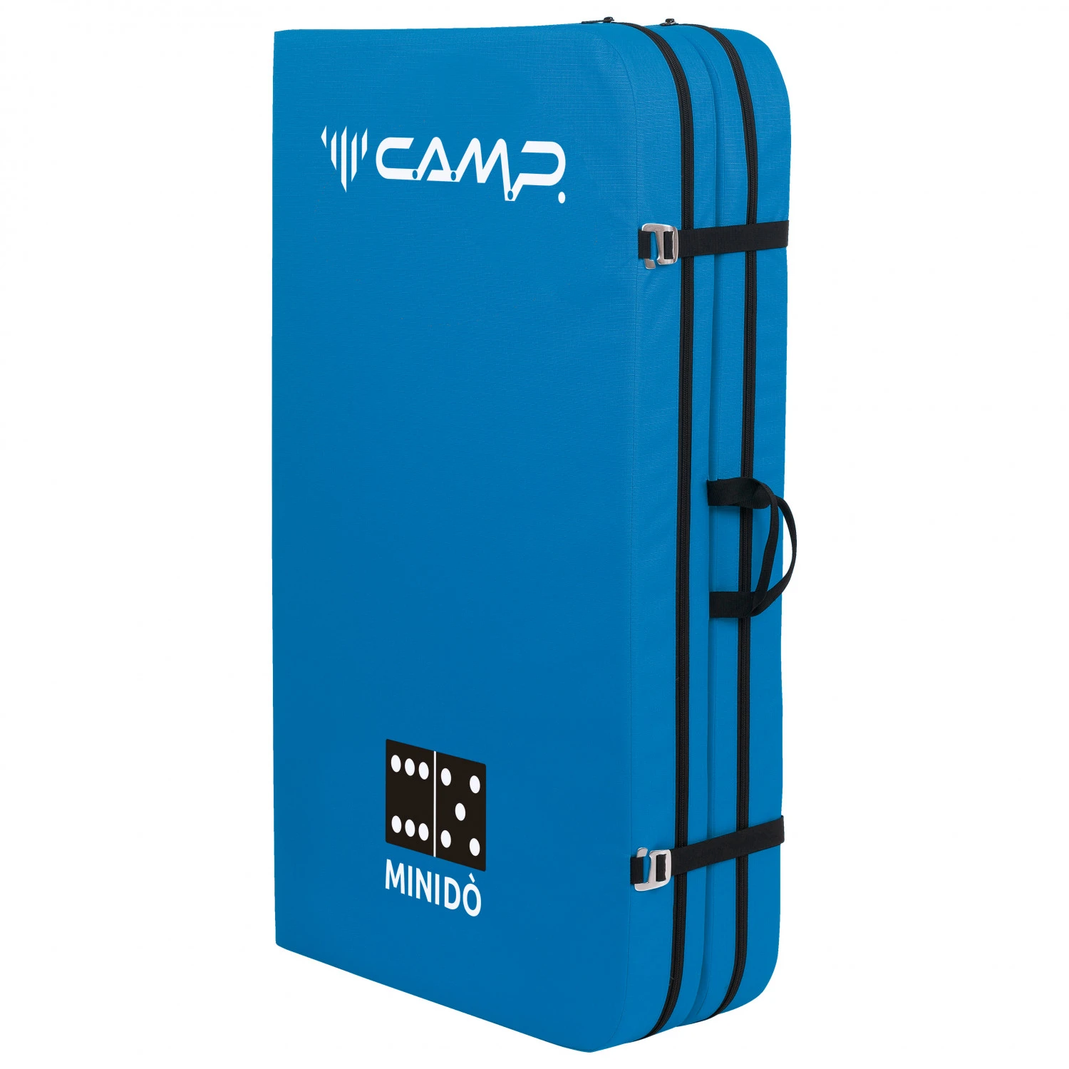 Das C.A.M.P. Minidò Crashpad besteht aus robustem 600D Tri-Ripstop und ist mit drei Lagen Schaum befüllt. Als oberste Schicht dämpft 15 mm dicker PE Schaum, der auch in 35 mm auf der Unterseite vor Durchschlag auf den Untergrund schützt. Die 55 mm starke Schicht aus PU Schaum dämpft in der Mitte und absorbiert beim Bouldern die Aufprallenerige. Das faltbare Crashpad ist mit Aluminiumschnallen ausgestattet und kann entweder auf dem Rücken oder mit seitlichen Tragegurt transportiert werden.