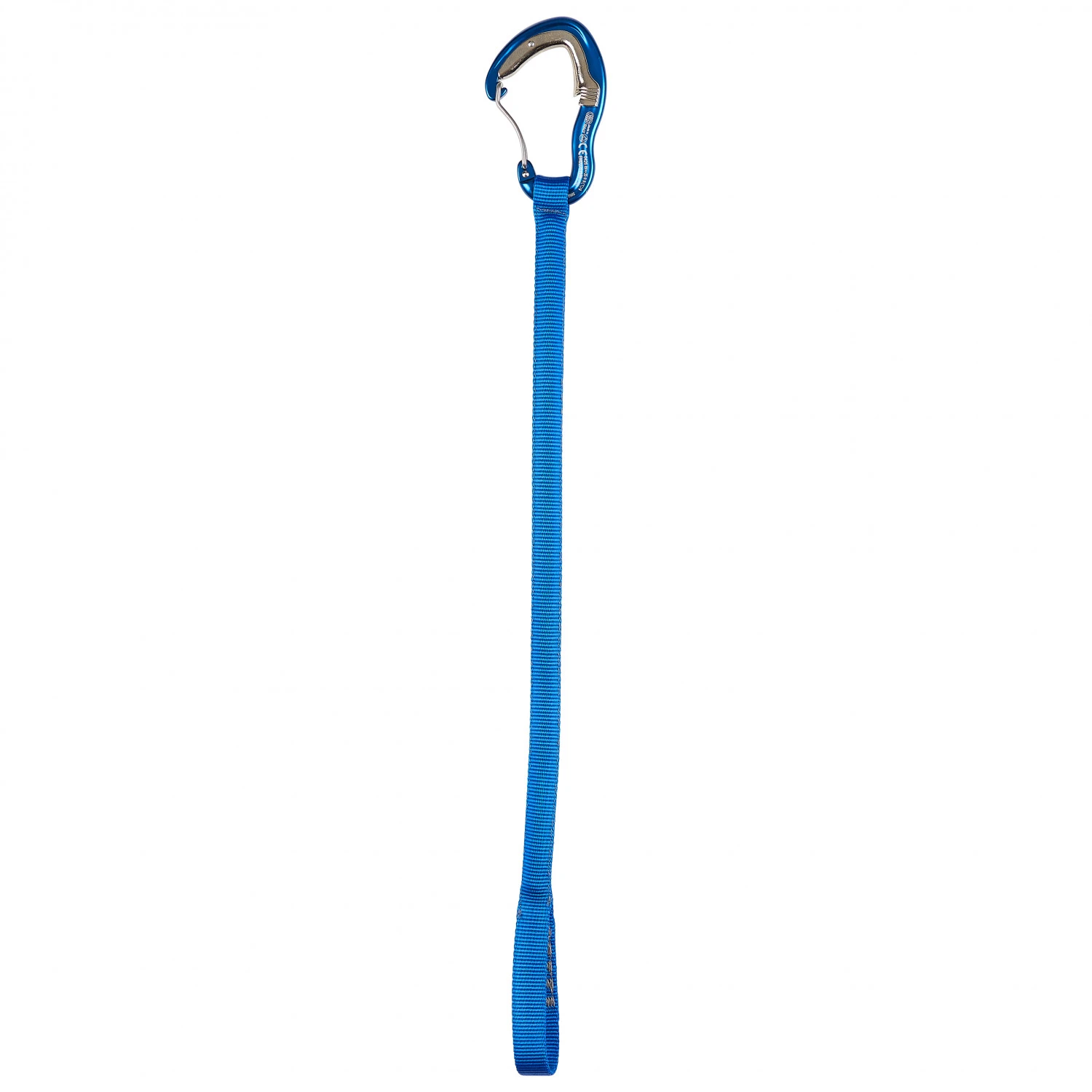Super zur Entschärfung schwieriger Kletterstellen: Mit der praktischen Panic Cliphilfe von The Blue Light lassen sich schlecht positionierte Haken auch aus der Distanz erreichen – denn die 30 bzw. 50 cm lange Schlinge (stammt übrigens von Beal) ist so versteift, dass sich das Express-Set wie ein Clipstick nutzen lässt.