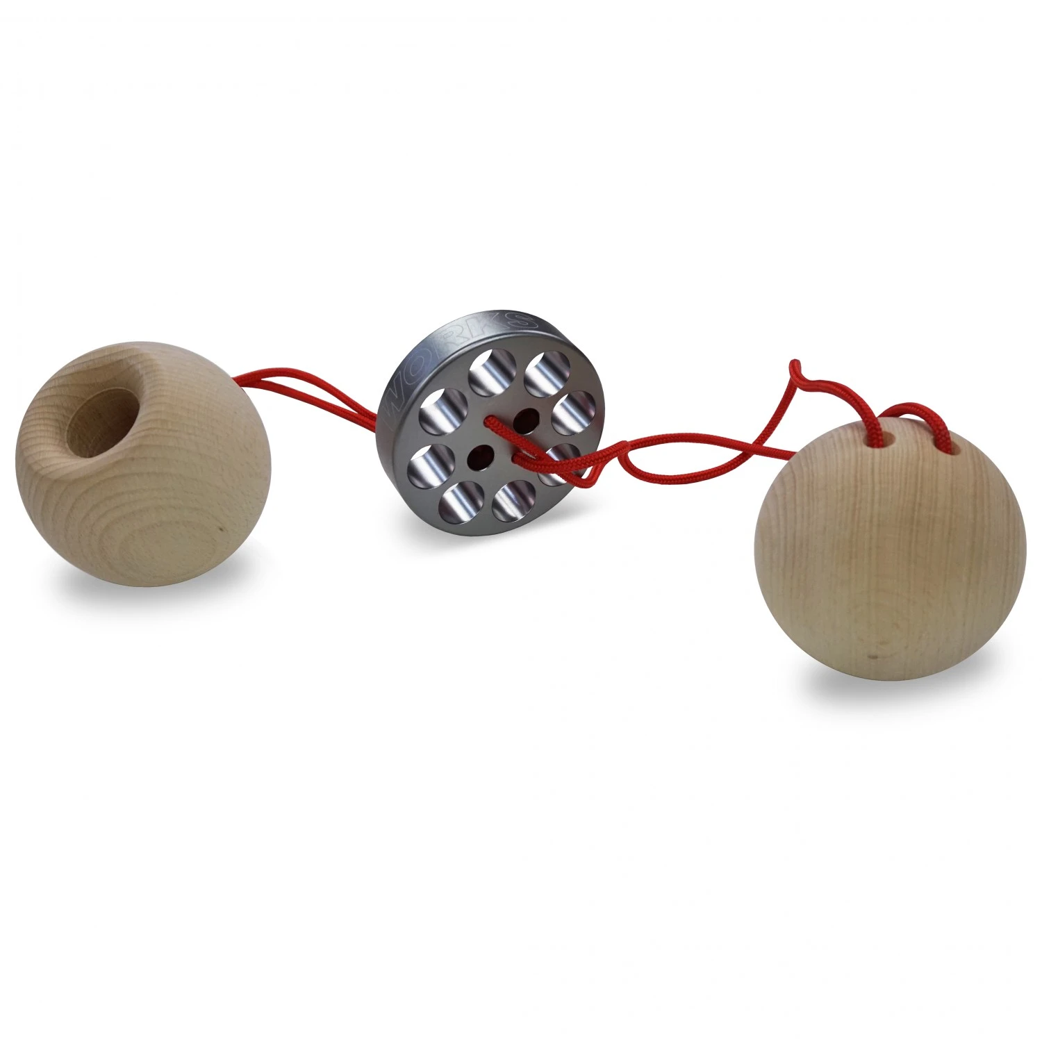 Das Rotant Sphere zwingt fast jeden Klettersportler in die Knie. Rythmisch auseinandergezogen entstehen starke Zugkräfte von mehr als zehn Kilogramm. So werden Schultern, Arme, Nacken und obere Rückenmuskulatur gezielt trainiert oder auch aufgewärmt.