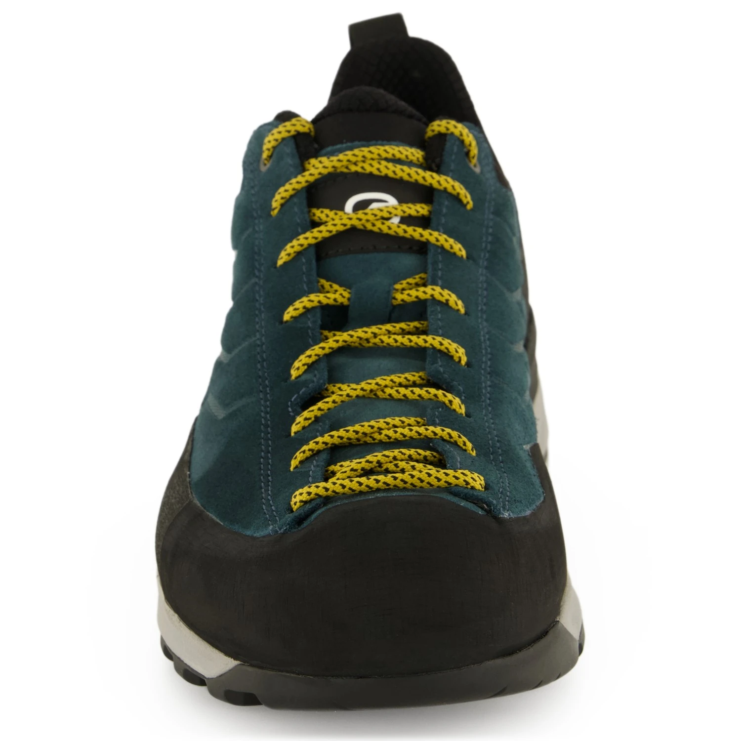 Perfekt geeignet für Zustiege, Klettersteige und Wanderungen: der Mescalito GTX von Scarpa! Der Schuh verwendet ein robustes Obermaterial aus Veloursleder, das von Natur aus wasserabweisende Eigenschaften besitzt. Zusätzlich kommt eine GORE-TEX Extended Comfort Membran zum Einsatz, die neben ihrer Wasserdichtigkeit eine hervorragende Atmungsaktivität bietet. Der Schaftabschluss aus elastischem Stoff verbessert den Tragekomfort, während das erweiterte Schnürsystem ein präzises Anpassen ermöglicht.