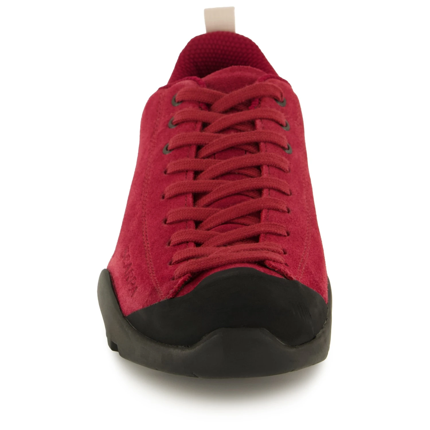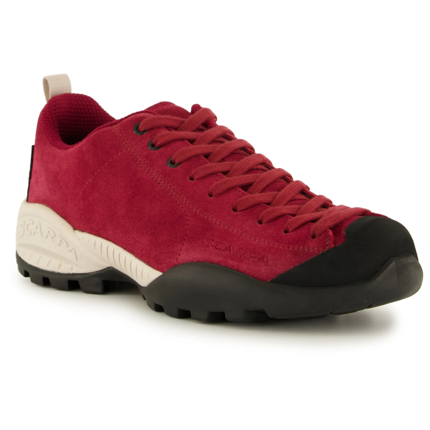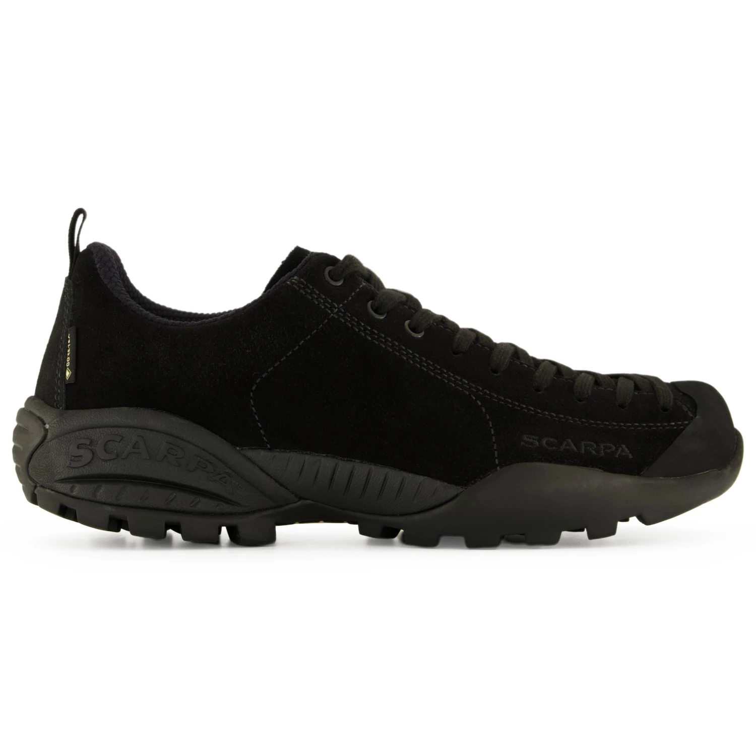 Ob durch Laubwälder oder durch den Großstadtdschungel – die Scarpa Mojito GTX machen alles mit! Sie verbinden das schöne Design aus weichem Veloursleder mit funktionalen Extras. Das verwendete GORE-TEX Material ist wind- und wasserdicht, lässt den Fuß aber trotzdem atmen. So kann Wasserdampf von innen nach außen entweichen! Eine Zehenkappe schützt vor spitzen Kanten und Ecken. Die Gummisohle kommt mit einem EVA Fußbett, das Stabilität und Tragekomfort bringt! Eine angenehme Fersendämpfung ist ebenfalls mit dabei. Durch die tief gehende Schnürung sitzt der Schuh fest und bequem am Fuß. Der Mojito GTX ist bei jedem Wetter ein guter Begleiter und meistert den Weg über Stock und Stein ohne Probleme!
