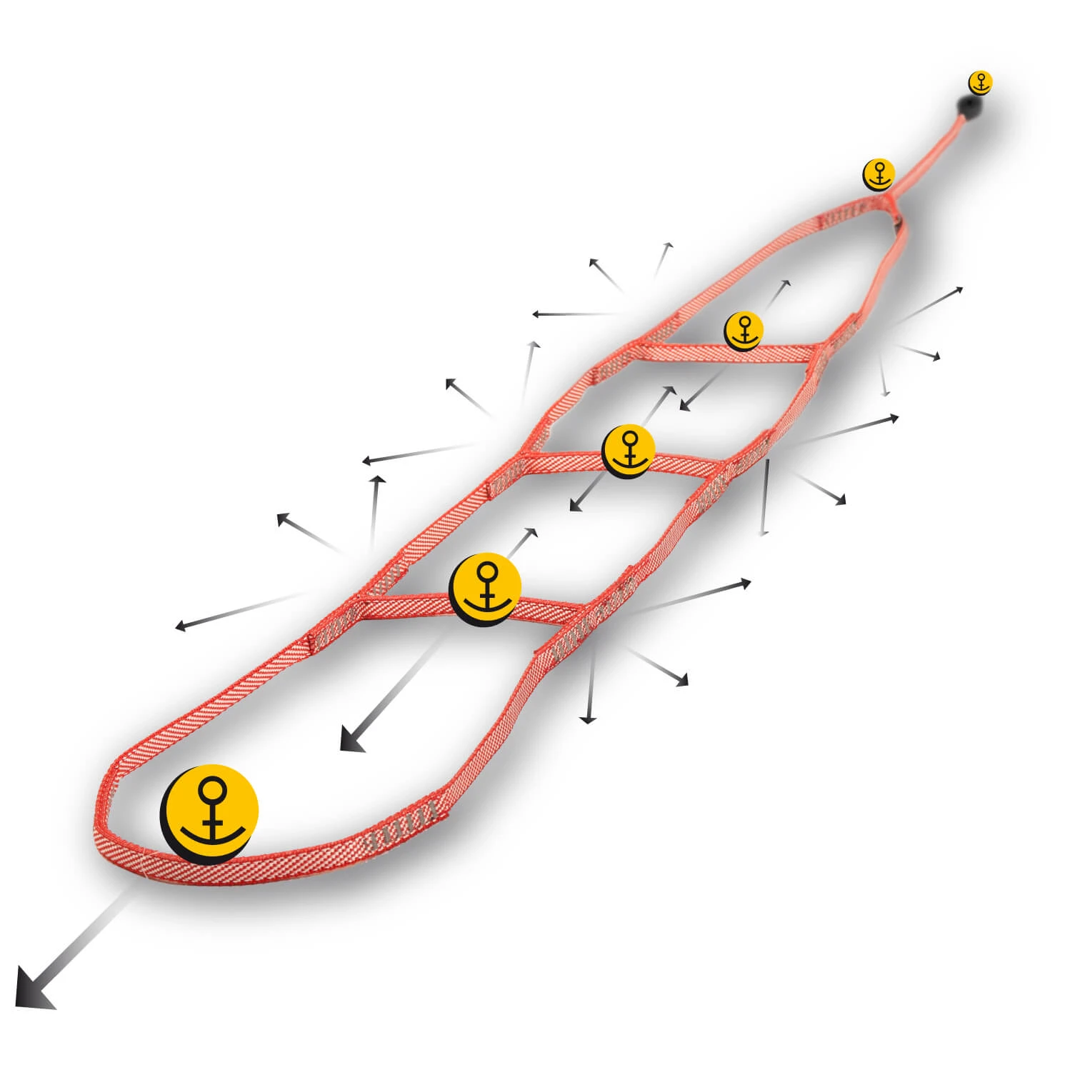 Die Jacob Dyneema Trittleiter von Singing Rock ist sehr leicht, witterungsbeständig und sehr belastbar. Dabei kann jede der vier Sprossen einzeln und nach allen Seiten belastet werden und weist eine Bruchkraft von 22 kN auf. Die Jacob DyneemaTrittleiter mit den praktisch vorgeformten Stufen kann wegen ihrer ausgezeichneten Bruchlastwerte auch als Bandschlinge, Verbindungselement oder Rettungsschlinge benutzt werden.